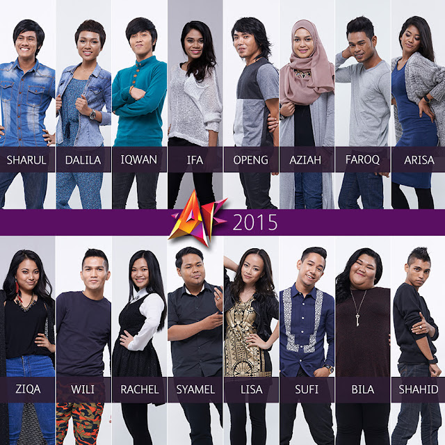 Barisan pelajar AF 2015 pula adalah Sharul [Muhammad Shahrul Amin Kamarozaman, 19, Negeri Sembilan], Iqwan [Muhammad Ikhwan Alif Salim, 20, Perak], Syamel [Syameel Aqmal Mohd Fodzly, 22, Kuala Lumpur], Openg [Anthonasius Jadil, 23, Sabah] dan Faroq [Muhammad Amyroulfarouk Mohd Nor, 23, Melaka], Sufi [Mohammad Sufie Rashid, 24, Singapura], Syahid [Khairul Mohd Syahid Abu Hassan, 27, Melaka] dan Wili [Suili George, 28, Sabah].